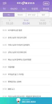A **BBS불교방송** integrált alkalmazása négy fő pilléren nyugszik, hogy teljes körű digitális élményt nyújtson. Az **FM RADIO** modulban inspiráló zenék, mélyenszántó történetek és dharma tanítások kísérik mindennapjait, segítve a lelki harmónia elérését. A **BBS TV**-n keresztül megható dokumentumfilmeket, tisztelendő szerzetesekről szóló drámákat és tanulságos előadásokat tekinthet meg, amelyek vizuálisan és hallhatóan is táplálják a lelket. A **BBS NEWS** modul pártatlan és központi perspektívából mutatja be a világ eseményeit, a buddhista filozófia szűrőjén keresztül. Végül, a **BBS 만공회** egy élénk közösségi tér, ahol a támogatók összejöhetnek, megoszthatják tapasztalataikat és erősíthetik egymás hitét.