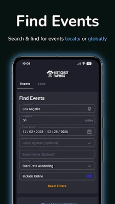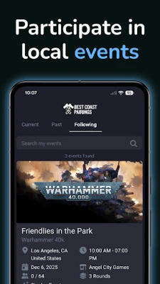 Készülj fel a tökéletes versenyélményre a Best Coast Pairings alkalmazással, amely elengedhetetlen társad a tabletop játékok világában! Ez az applikáció zökkenőmentes és intuitív mobilközpontú élményt kínál minden esemény résztvevőjének. Fedezd fel a közelgő versenyeket, regisztrálj rájuk pillanatok alatt, és használd ki a távoli bejelentkezés kényelmét. Frissítsd játékosprofilodat egyszerűen, és töltsd fel a hadsereg- vagy paklilistáidat, még mielőtt az első kocka eldőlne.