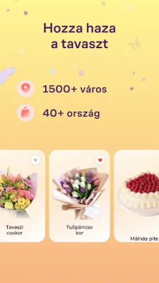 Képzelje el, hogy a meglepetés öröme vagy egy azonnali kényeztetés már nem várhat holnapig. A Flowwow alkalmazással helyi üzletek ezreinek sokszínű kínálata nyílik meg Ön előtt világszerte, lehetővé téve, hogy akár pár órán belül friss virággal, ínycsiklandó süteménnyel, egyedi ajándékkal vagy egyéb kiegészítőkkel lepje meg magát vagy szeretteit. Legyen szó spontán gesztusról, ünnepi alkalomról vagy egy hétköznapi örömszerzésről, a Flowwow gyors és megbízható megoldást kínál, ami kézben tartja az azonnali elégedettség élményét, több mint 1500 városban.