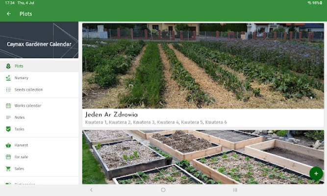 Az alkalmazás rugalmas, többrétegű struktúrája illeszkedik az Ön igényeihez, lehetővé téve akár több telek – legyen az zöldségeskert, gyümölcsös vagy nagyméretű termőföld – egyidejű kezelését. Minden telken belül egyedi blokkokat hozhat létre a kultúrák elkülönítésére, például almás és körtés negyedekre osztva a gyümölcsöst. Az ágyásokban aztán tetszőleges számú növényt nevelhet, mindegyikhez többféle fajtát is rögzítve. A palántanevelő funkcióval előre tervezheti a vetéseket, melyeket később átültethet a végleges helyükre, vagy közvetlenül az ágyásokba is ültethet.