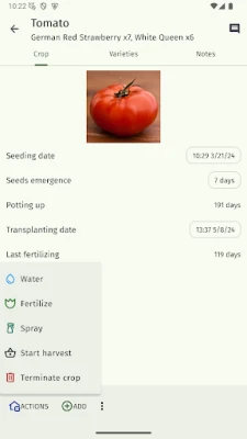Soha többé ne feledkezzen meg az öntözésről vagy a trágyázásról! Ez a kertészeti naptár alkalmazás segít emlékeztetők beállításában, és átfogó képet ad a kertben elvégzett összes munkáról. Az elvégzett feladatokat jegyzetekként rögzítheti, így egy digitális „kertésznaplója" lesz, amelyben bármikor visszakeresheti a korábbi beavatkozásokat. A piacos kertészek számára külön értékesítési modul áll rendelkezésre: jelölje meg az eladásra szánt terményeket, adja meg az árat, és könnyedén nyomon követheti az összes eladási tranzakciót a betakarítás után.